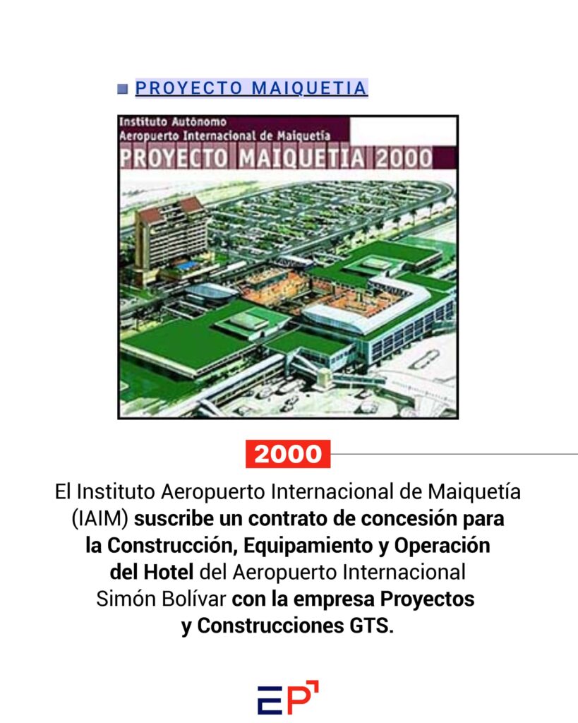 La historia que rodea la construcción del hotel Gran Cacique Maiquetía inició en el año 2000, cuando el Estado venezolano suscribió un contrato de concesión con la empresa Proyectos y Construcciones GTS, presidida por Camilo Lamaletto, para construir la edificación, que forma parte del Plan Maestro Maiquetía 2000.