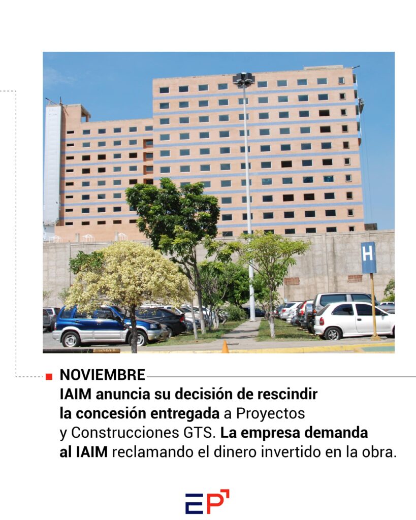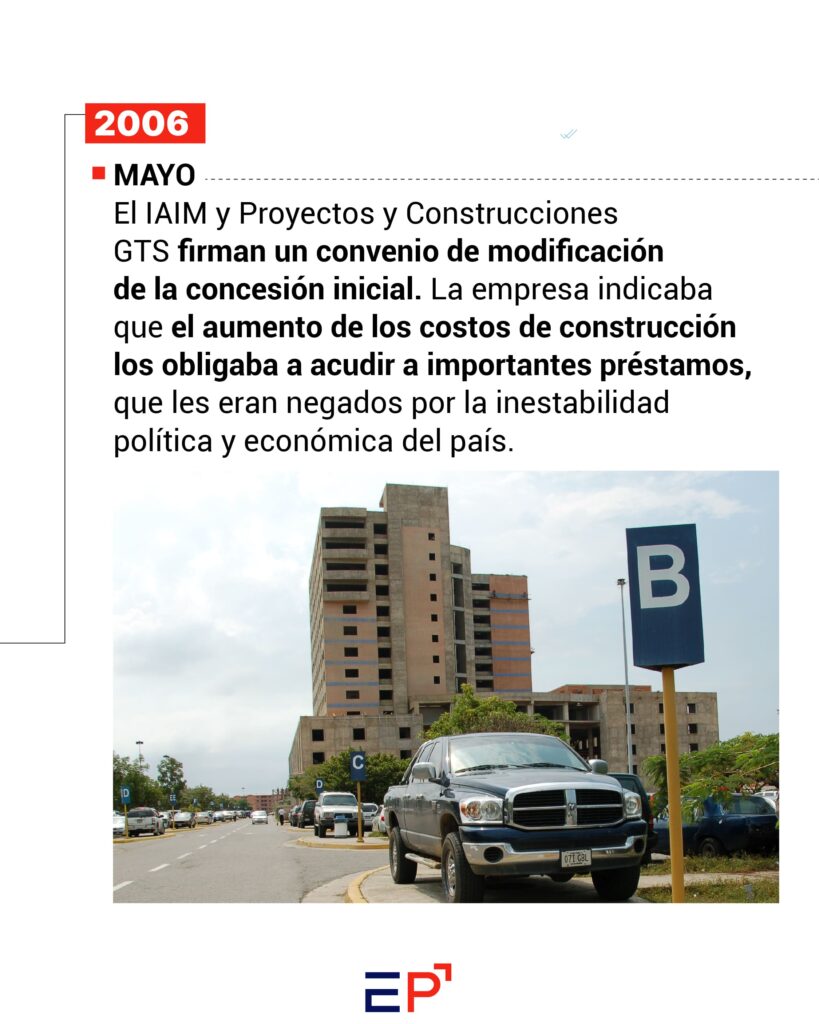Aunque la construcción fue avanzando, la relación entre la empresa y el Estado venezolano se fue deteriorando. Entre 2006 y 2011 se desarrollaron litigios para rescindir la concesión, contrademandas y amparos que buscaban un reconocimiento a los gastos hechos por Proyectos y Construcciones GTS, que aseguraba haber invertido 18 millones de dólares para la ejecución de 74% de la obra.