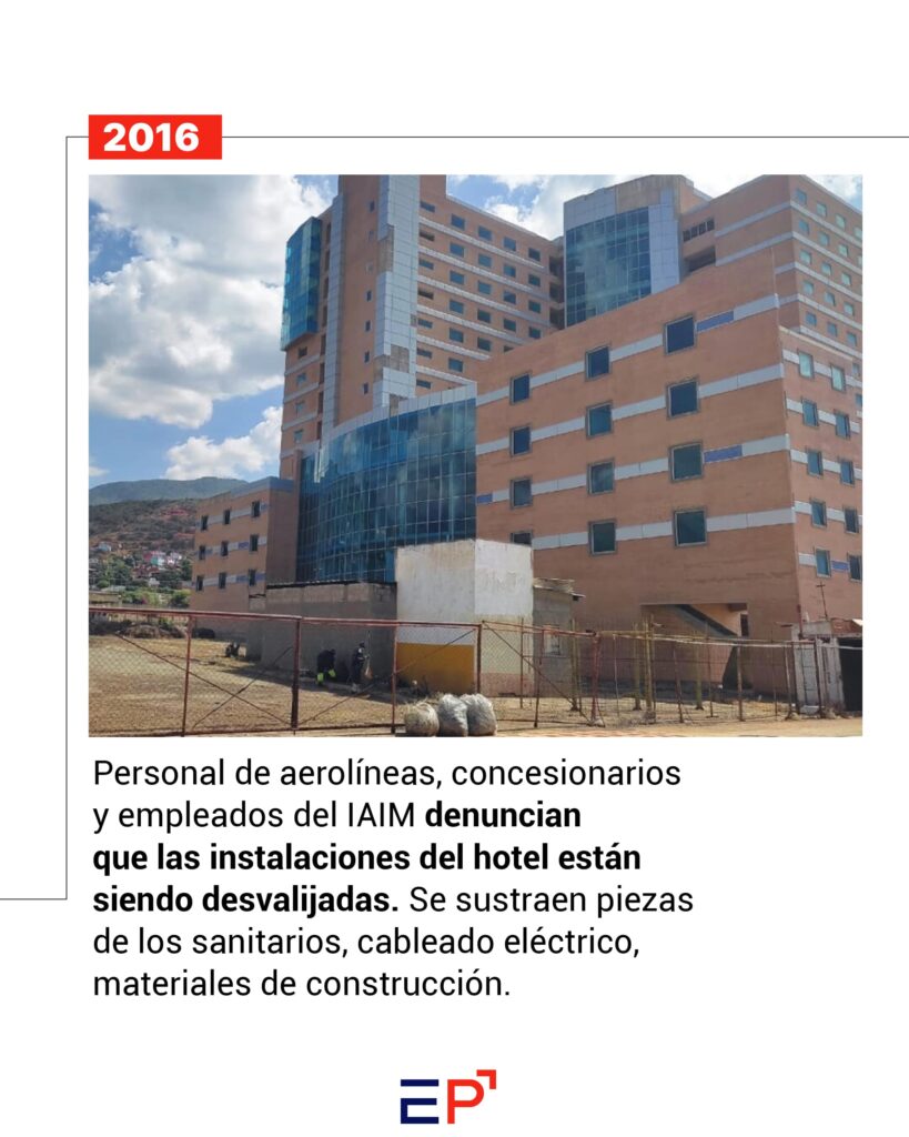 “Hasta ahora se está trabajando fuertemente para lograr tener todo listo antes que termine septiembre. En esta primera etapa se tendrá listo el lobby, la rampa de acceso directo entre la terminal internacional y el hotel, algunas áreas recreativas y habitaciones para poder hacer atractiva la operación de apertura. Se está haciendo un trabajo importante en cuanto la garantía de servicios, pues el tiempo sin uso, siempre juega en contra”, señala uno de los obreros, que conversó con El Pitazo el pasado primero de septiembre, con la solicitud de reservar su identidad.
