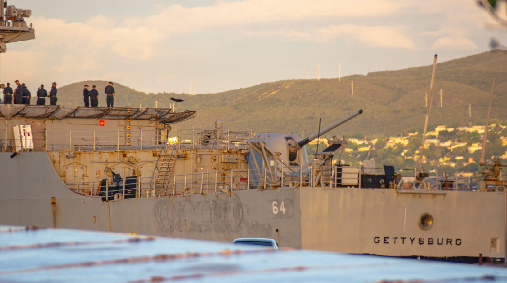 El crucero de misiles guiados USS Gettysburg (CG-64) fue fotografiado durante la mañana de este miércoles en el muelle de Ponce, Puerto Rico, luego de ser incluido en la misión antinarcóticos desplegada por el presidente estadounidense, Donald Trump, en el mar Caribe.