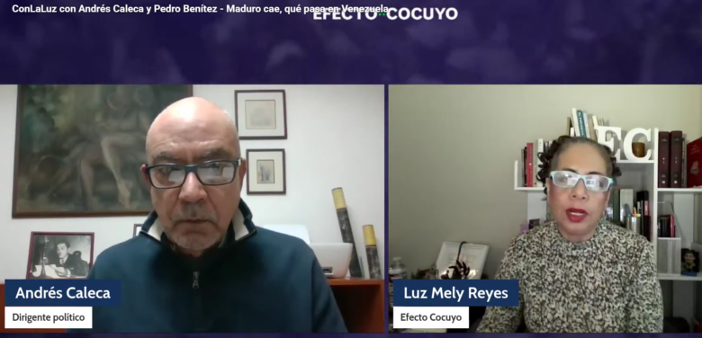 Para Andrés Caleca, el momento actual en Venezuela representa un punto decisivo en la historia actual, pero no equivale a una transición democrática. El dirigente político participó este 20 de enero de 2026 en el programa Con La Luz de Efecto Cocuyo, conducido por Luz Mely Reyes y junto al analista Pedro Benítez abordó el tema “Maduro cae, qué pasa en Venezuela”, con énfasis en los eventos del 3 de enero de 2026 y la coyuntura política de los actuales tiempos.