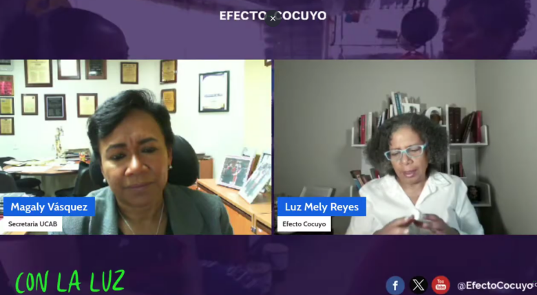 Magaly Vásquez González, abogada y secretaria general de la Universidad Católica Andrés Bello (Ucab), expuso con detalle su postulación al cargo de fiscal general de la República, durante su participación en el programa ConLaLuz, conducido por Luz Mely Reyes en Efecto Cocuyo la noche de este 10 de marzo.