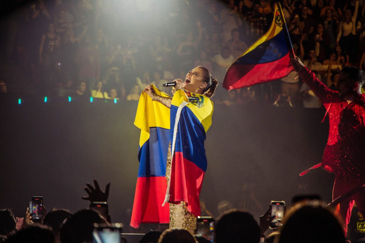 Durante su presentación, la artista aprovechó para detenerse a celebrar el triunfo de los venezolanos. El público inmediatamente reaccionó con alegría, algo esperado tomando en cuenta que es habitual que los conciertos de la artista en la región cuenten con la presencia de fanáticos venezolanos.